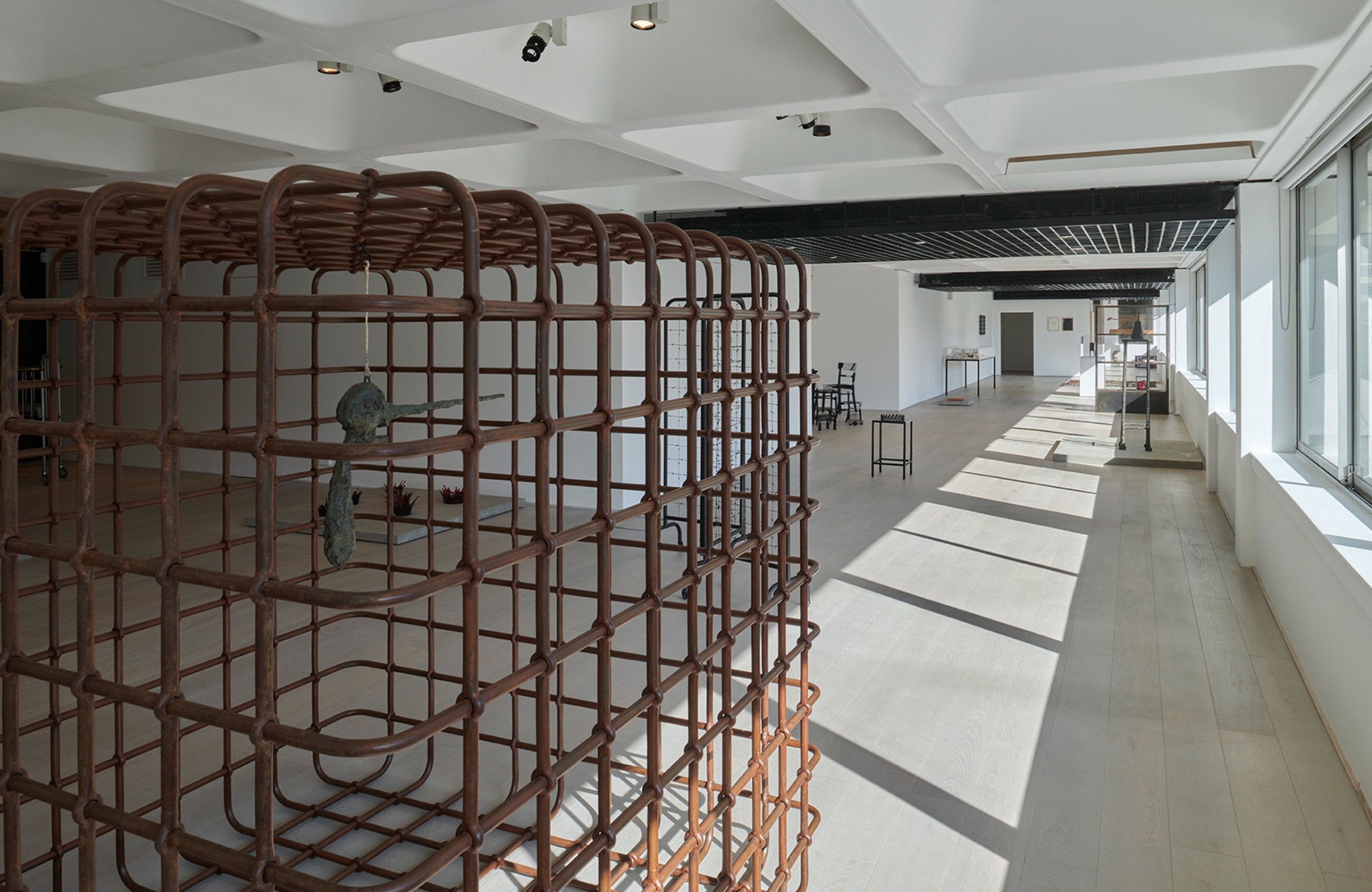Externally, material choices were informed by the raw, industrial character of the exhibitions. Key materials included patinated steel with a deliberately raw effect finish, alongside microcement surfaces, selected to align with the architectural language and atmosphere of the gallery spaces. These materials create a subdued, tactile backdrop that complements the curatorial intent without competing with the artworks.