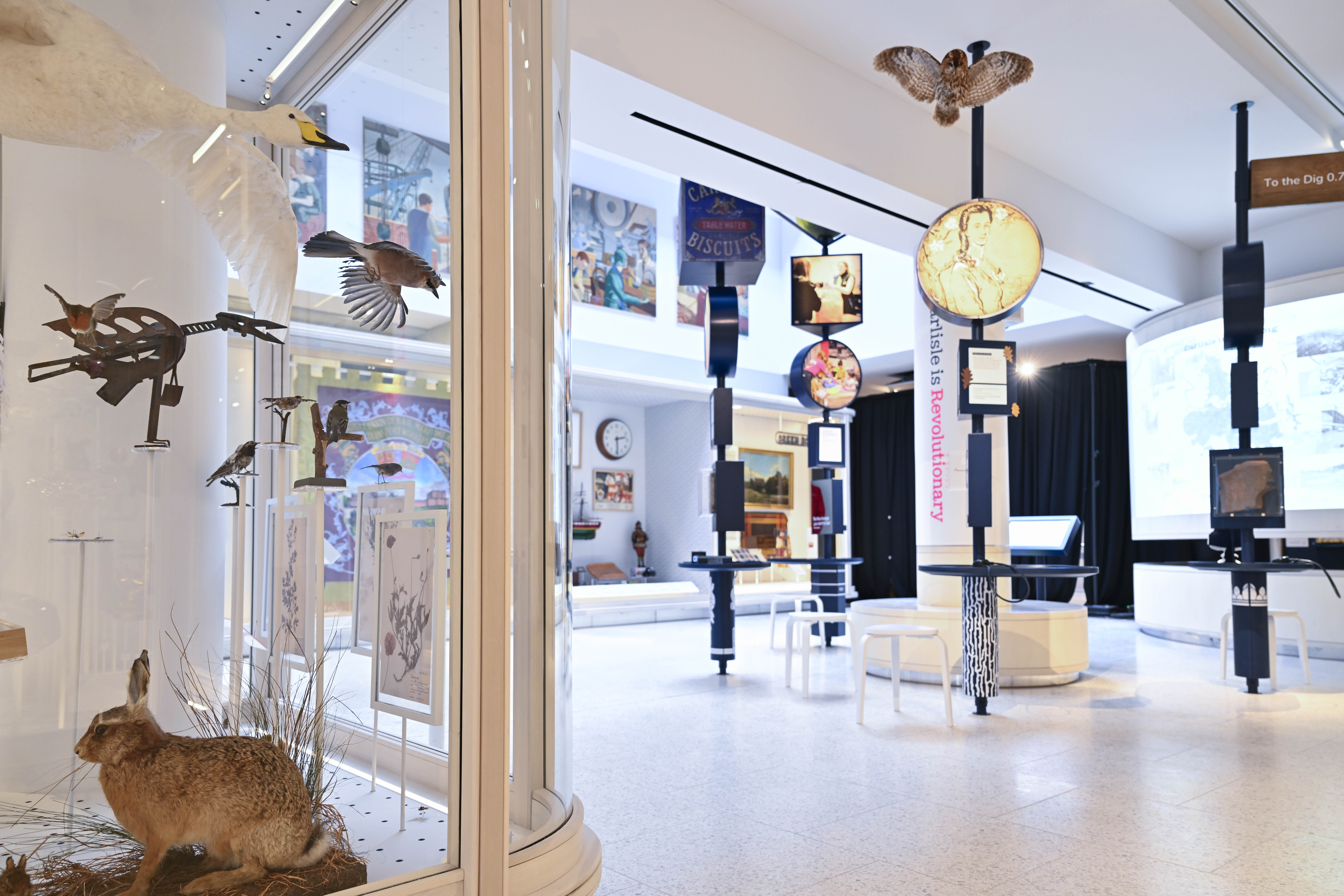 Tullie offers an inviting introduction to the museum’s extraordinary collections, spanning human creativity since 1564, substantial natural science material, and over ten thousand years of history. Housed in the refurbished atrium of the 1990s extension to the Grade I listed building, this permanent space connects Carlisle’s past, present and future through key themes: Social, Wild, Industrial, Resilient, and Revolutionary.