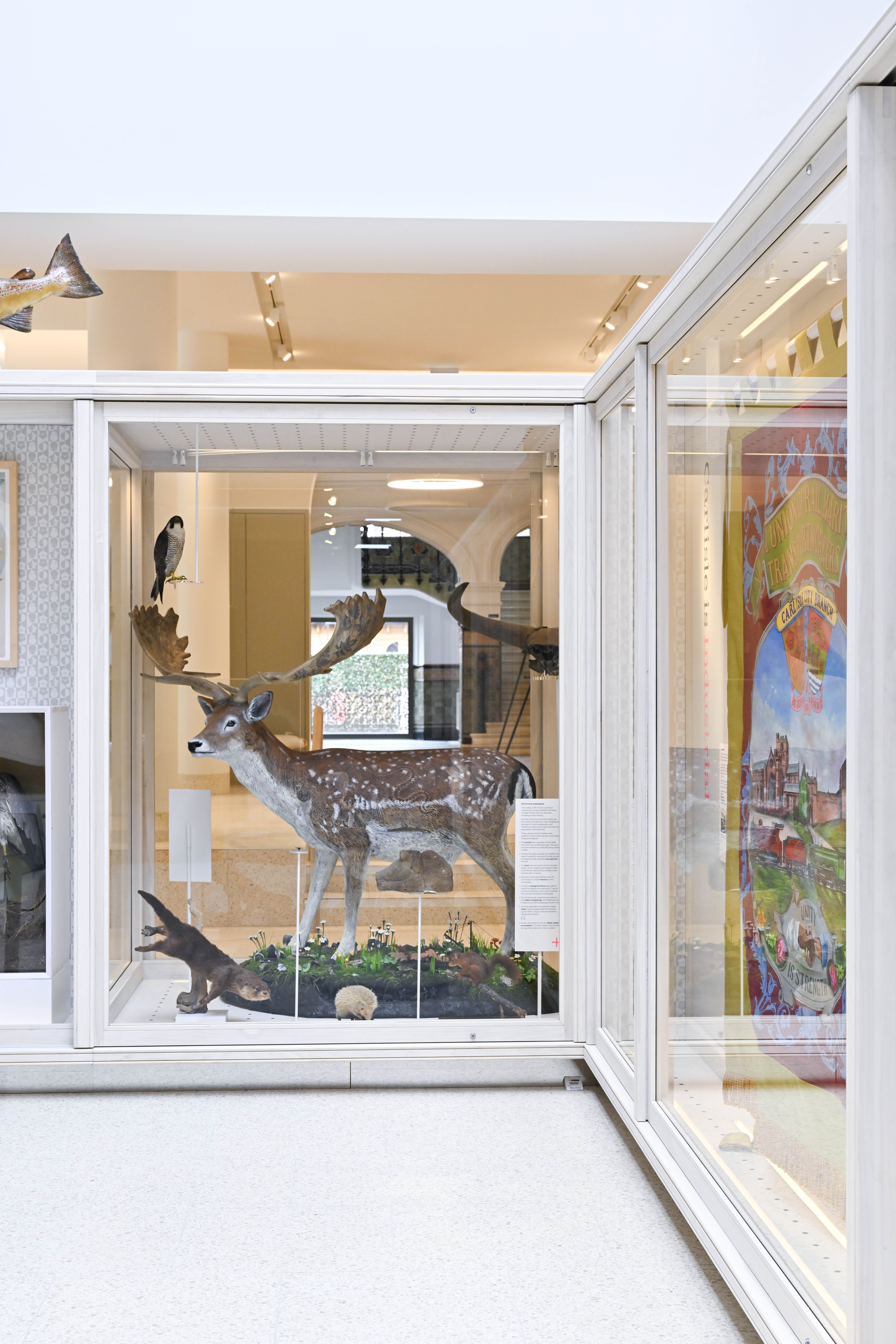 Throughout the process we engaged with local people, community voices, and expert groups to ensure the gallery represents and resonates with those who live in Carlisle. Our design and fabrication were guided by that dialogue: designing for interactivity, multi‑sensory engagement, and objects both handled and viewed. Pieces such as taxidermy birds, fossils, an owl, a toy crane and a fox, are carefully placed to blur lines between display and experience.